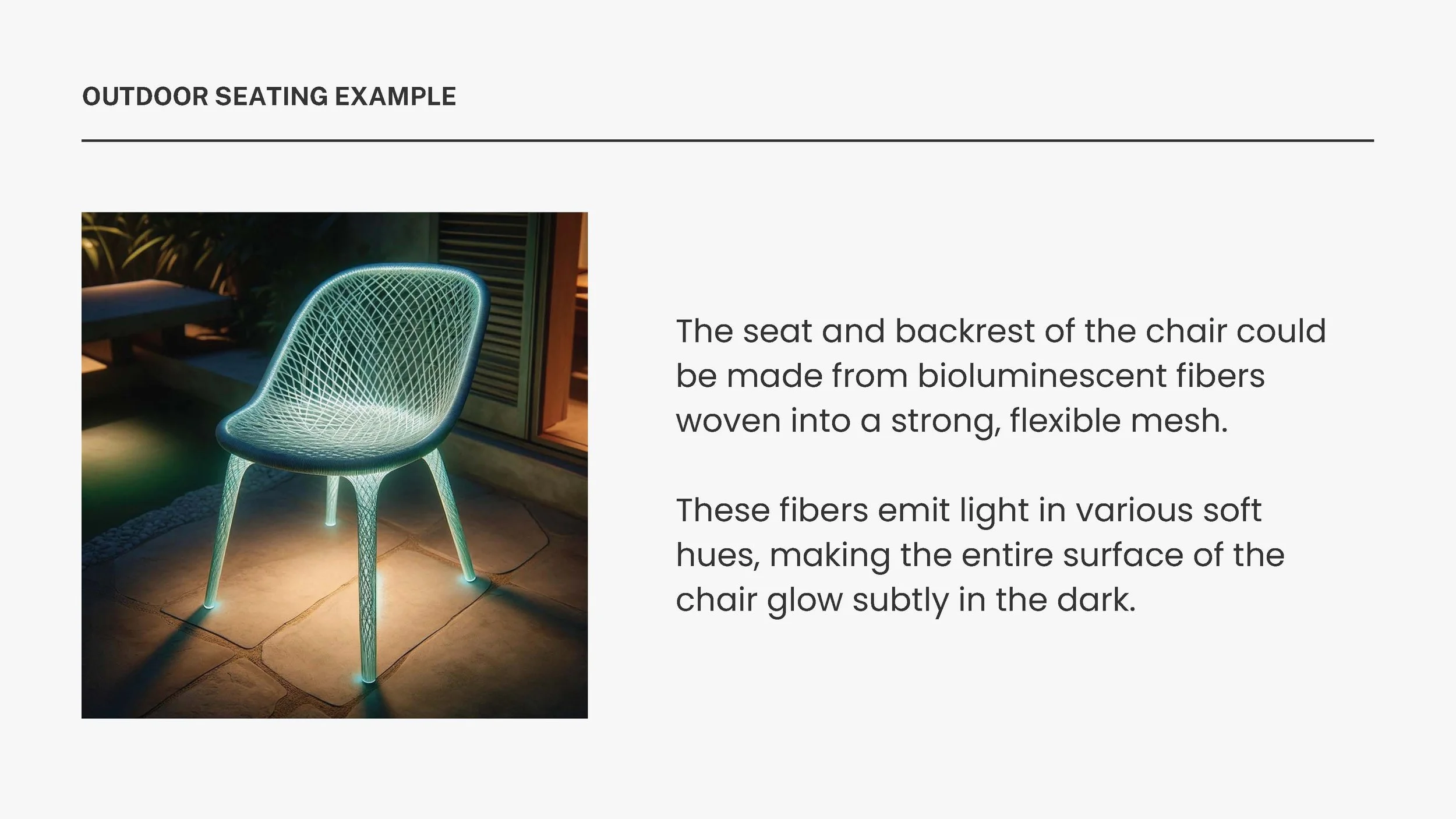 How do you project outdoor living in the future? You can choose to work on a space or an idea, an object - for example: it could be a concept for a space, a piece of furniture, imagining new ways of sitting, leaving, or developing new products (i.e. furniture/bench), or you can work on developing new material).